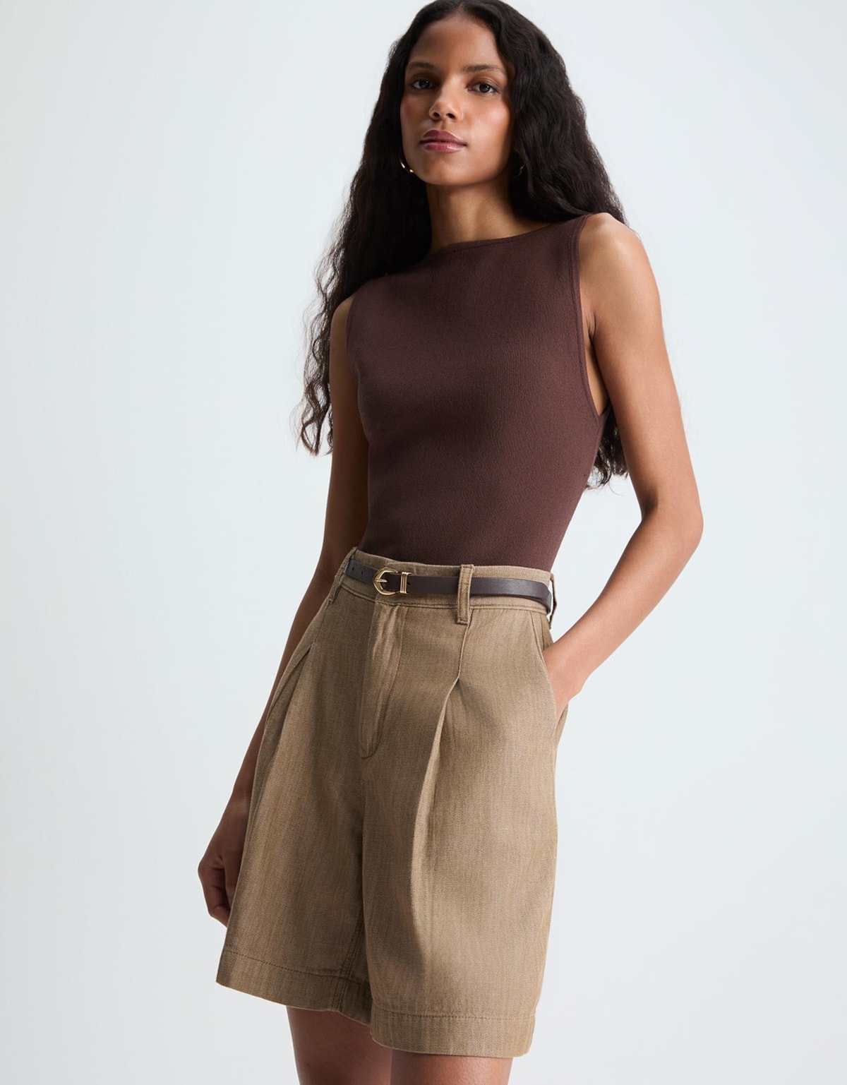 Confeccionada em Special Denim — tecido de algodão, linho e viscose — une conforto, frescor e um toque natural.