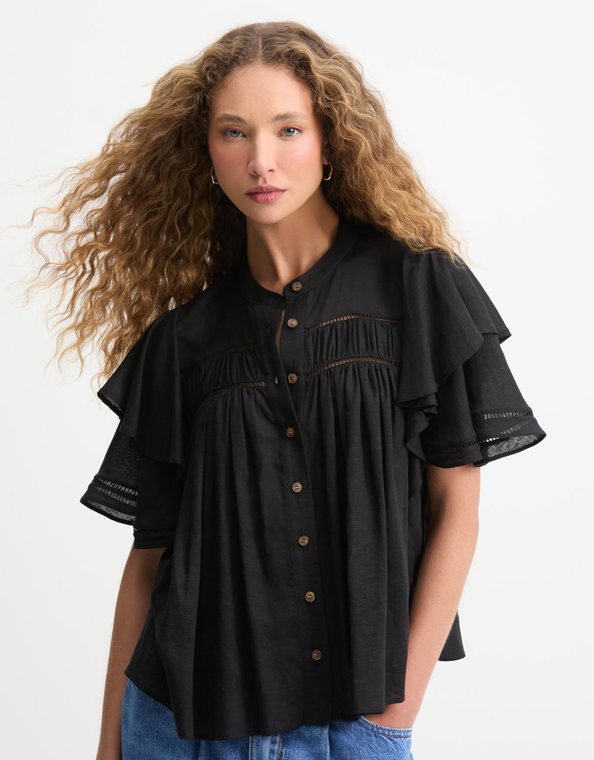 A blusa em tecido natural de linho com viscose é a escolha ideal para quem busca leveza, frescor e elegância no dia a dia.