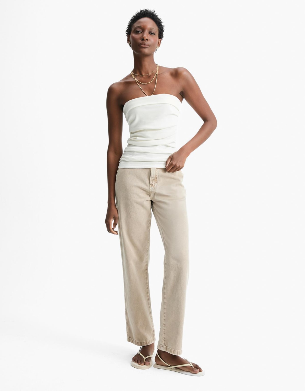 A Calça Reta em Sarja Shoulder combina estilo atemporal e conforto natural.